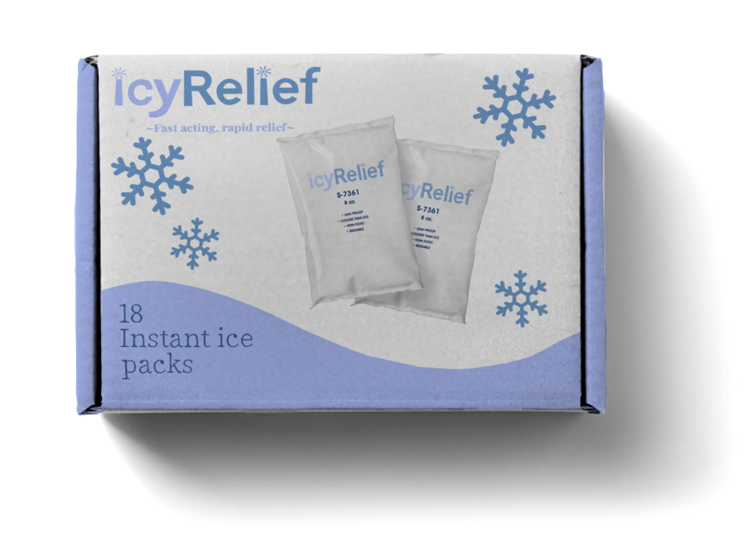 An 18 pack of icyRelief instant icepacks for your fast-acting relief!